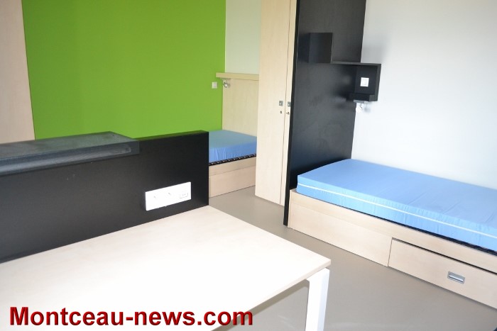 – une unité d’hébergement pré-bac de 45 lits (lycéens et collégiens) séparée de l’unité post-bac, composée de chambres de 4 places (11 chambres de 28 m²), d’une chambre accessible aux personnes à mobilité réduite, de deux chambres de surveillant, de salles de travail pour 10 à 16 personnes, de sanitaires collectifs, de blocs douches collectifs ;