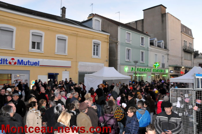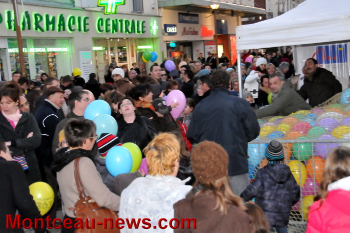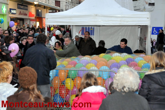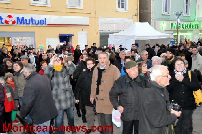Didier Mathus, le maire, a appuyé sur le bouton magique et la lumière ou plutôt les lumières ont illuminé les yeux des enfants et des plus grands… Accompagné de Pierre Rémy, président de Montceau Centre Ville et de Bernard Achat (Evenementiel Production : animateur de l’opération) ainsi que par de nombreux élus.