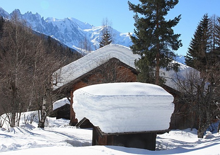 Quant à la durée du jour , elle ne présente pas une grosse différence avec celle de la plaine ! Quand le soleil disparaît derrière la montagne de « Servoz » , ses rayons continuent d’éclairer le massif enneigé qui réfléchi la lumière dans la vallée !