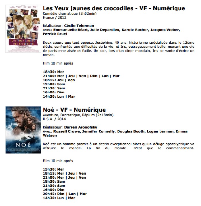 A l'affiche, cette semaine (du 9 au 15 avril 2014)