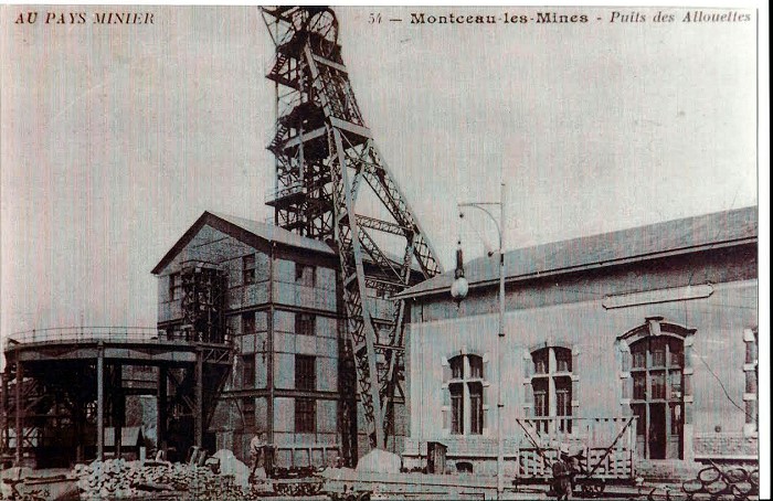 Le puits des alouettes et les mineurs avant « l’encagement » en 1946. »
