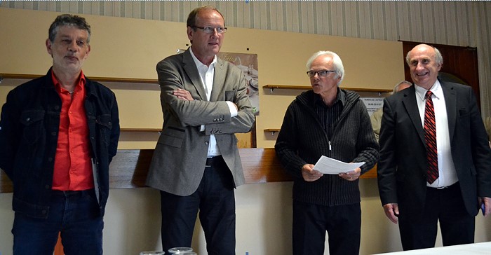 Le président André Chandet entouré d’Alain Philibert, Maire de Saint Vallier, de Jean Claude Lagrange, Maire de Sanvignes, de Daniel Meunier adjoint au Maire de Saint Vallier, M. Yvan Douhard Conseiller à la mairie de Sanvignes excusé .