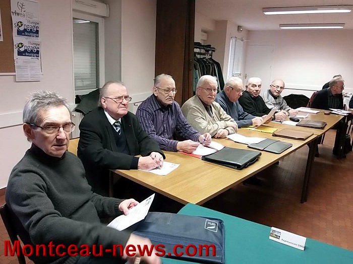Avec le Président Létang, entouré du secrétaire Michel Gilliot et du Trésorier Jean Hirtz, étaient également présents le Maire de Blanzy, Hervé Mazurek, Martine Kahouadji, Conseillère municipale à Montceau, les Présidents des Comité de liaison, Gilbert Clément et André Quincy, ainsi que de nombreux Présidents et représentants d’Associations d’Anciens Combattants.
