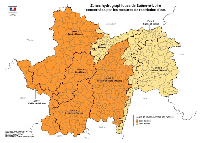François Philizot, préfet de Saône-et-Loire, qui a réuni le jeudi 19 mai 2011 le premier « observatoire sécheresse » de la saison afin de faire le point sur la situation de la ressource en eau dans le département, a donc pris un arrêté, restreignant les usages de l’eau sur les zones du département les plus touchées.