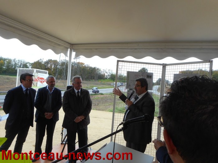Un point presse a été mis en place près du chantier après le giratoire du pont Jeanne Rose, il y a du lourd de prévu ici., réparation du pont existant, doublage des voies, détournement de la RD 974, réalisation d’un second pont. Et sous la tente il y a des personnalités de haut niveau, le Préfet, le sénateur Jérôme Durain, la députée Edith Gueugneau, le Député Thomas Thévenoud, Jean Claude Lagrange Maire de Sanvignes et Vice-Président de la CCM, Mmes les Maires de Montceau les mines Marie Claude Jarrot et d’Ecuisses Edith Calderon, Jean Yves Vernochet Maire de Montchanin et conseiller départemental, Lionel Duparay Adjoint au Maire de Montceau