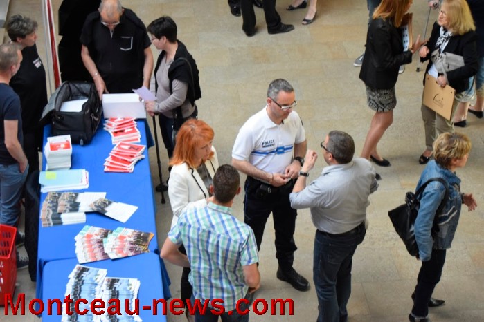 Madame Marie Claude Jarrot, entourée d’élus, accueille les nouveaux Montcelliens dans la galerie de l’embarcadère. Tout commence par la projection d’un film sur la ville de Montceau, sa vie, ses associations, ses manifestations, ses réalisations, ses forces vives, ses acteurs économiques d’exception, son tissu d’entreprises et d’industries innovantes, son canal et sa beauté… Le message de fin est « à bientôt à Montceau ».