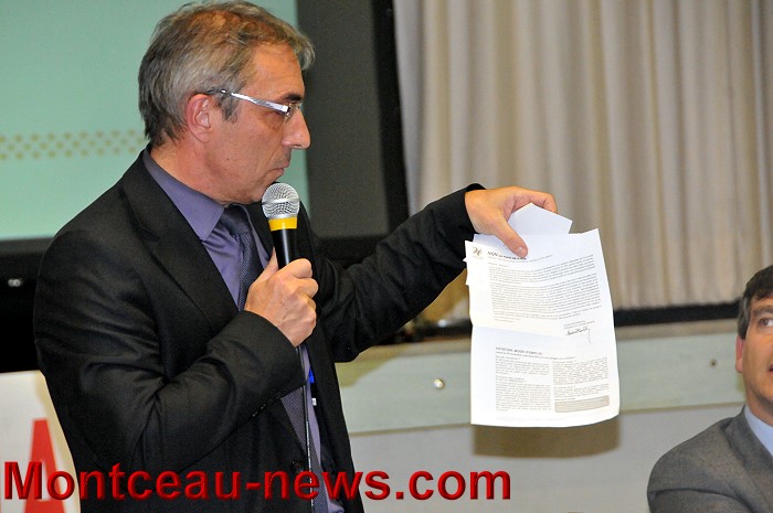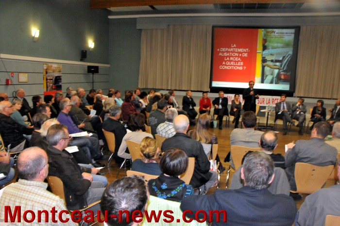 C’est en présence d’une centaine de personnes que, ce jeudi soir à Ciry-le-Noble, Arnaud Montebourg, président du Conseil général, Dominique Lotte, président délégué, Jean-Luc Fonteray, vice-président chargé des transports, etc. ont présenté la « Votation citoyenne » organisée pour « dire « non » à la mise en concession de la RCEA«