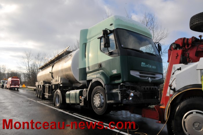 Selon les premières constatations, effectuées par les policiers du Creusot, un cyclomotoriste, déséquilibré sur le verglas, a chuté sur la chaussée, contraignant le chauffeur d’un camion citerne de l’entreprise Merlin, à freiner en catastrophe afin de ne pas l’écraser mais, ce faisant, s’est retrouvé sur la voie gauche. Deux automobilistes arrivant en face, surpris par la situation, n’ont pu éviter le poids lourd. Il s’agit d’une conductrice d’une Peugeot 205, âgée d’une quarantaine d’années, et un automobiliste au volant d’une Clio Renault, appartenant à la communauté urbaine Le Creusot – Montceau.