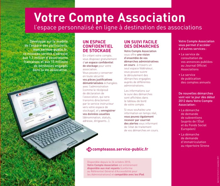Développée par la Direction Générale de la Modernisation de l’État et le Ministère de l’Intérieur, la démarche e-création est accessible sur l’espace en ligne Votre Compte Association. Rendez-vous sur