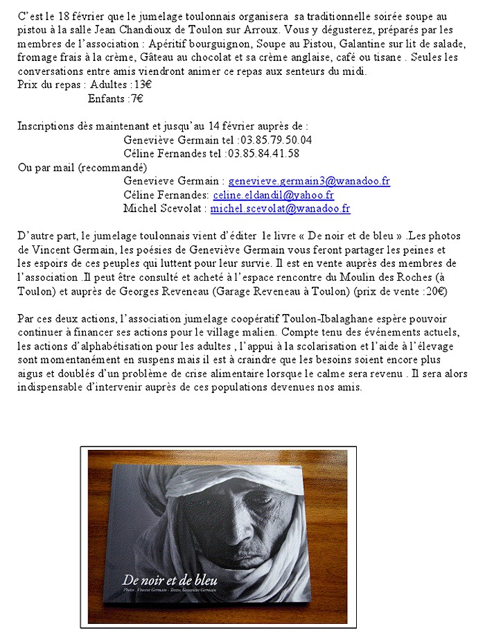 N'oubliez pas la soirée soupe au pistou du 18 février 2012 !
