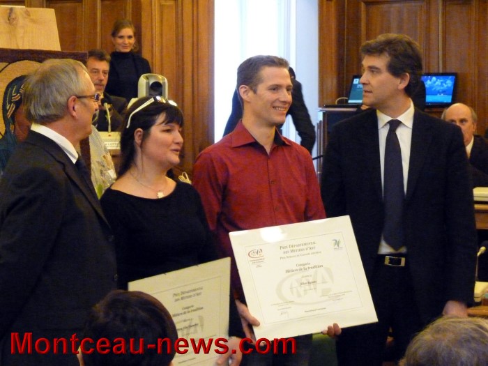Le prix départemental des métiers d’art spécial du Conseil général à Alban Bazatte, jeune ferronnier d’art installé à Dracy-les-Couches pour le « portail du Puits Vincent « . Il s’agit d’un portail en fer plein, d’un poids environ 600 kg, de couleur « effet rouillé ». Cette œuvre est inspirée du style du XVIIIe siècle, époque Louis XV avec ses volutes à noyaux, ses doubles volutes, les motifs géométriques et les matériaux en fer profilé.