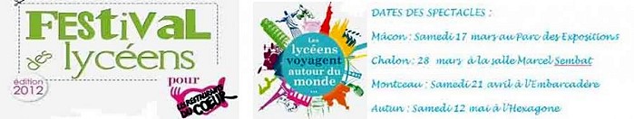 Pour la septième année consécutive, les lycéens de Saône et Loire organisent un festival de spectacles pour les Restos du Cœur de mars à mai 2012.