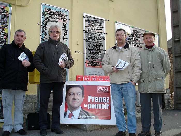 Dimanche matin, des militants du Front de Gauche ont distribué un tract au Champ du Moulin.