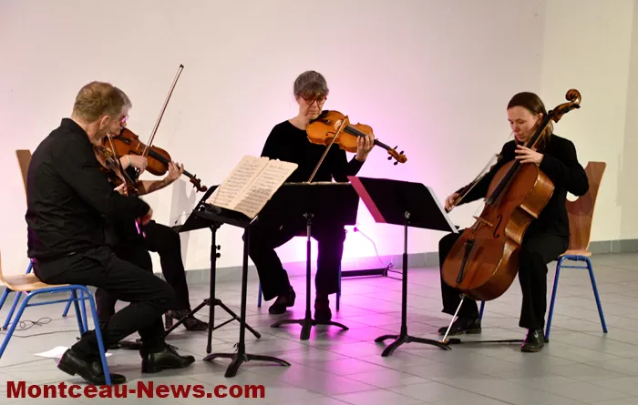 Samedi 20 décembre, la Médiathèque de Blanzy a invité la population pour un voyage musical avec le Quatuor Sedici Corde, un ensemble musical bourguignon composé de Nelly Lousteau et Yves Marrilliet aux violons, Claire Vincent à l’alto et Lorraine Brosse au violoncelle.