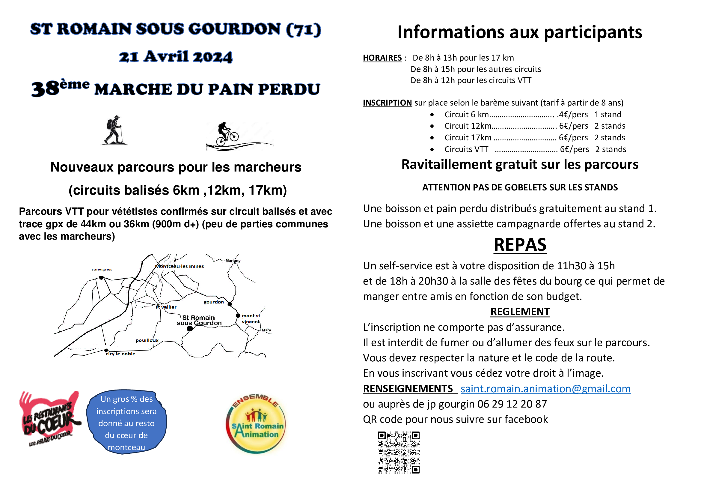 « Nous vous invitons à participer à notre 38ème marche et vtt du pain perdu le 21 avril 2024 à St Romain sous Gourdon.