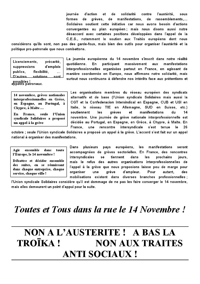 Journée d'action, le mercredi 14 novembre 2012 au Creusot et à Chalon-sur-Saône