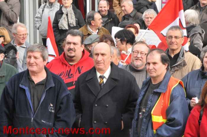 Des manifestants parmi lesquels figuraient des agents de la centrale Lucy (en grève pour 24 heures), des salariés de Michelin, des agents de l’hôpital etc. et évidemment Robert Wattebled, secrétaire de l’UL CGT, Hélène Fierro, FO) etc.