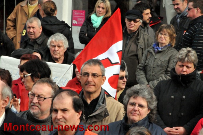 Un défilé a eu lieu de la mairie à la permanence du député Christophe Sirugue avant de revenir devant l’hôtel de ville où devait avoir lieu lune prise de parole.