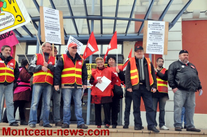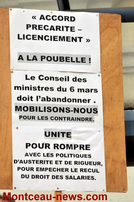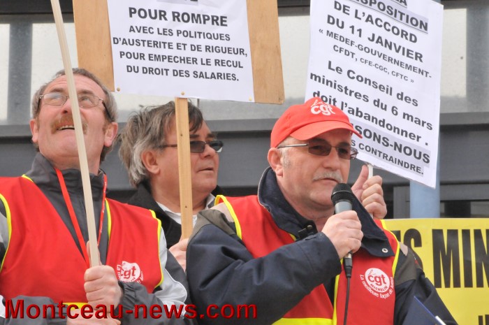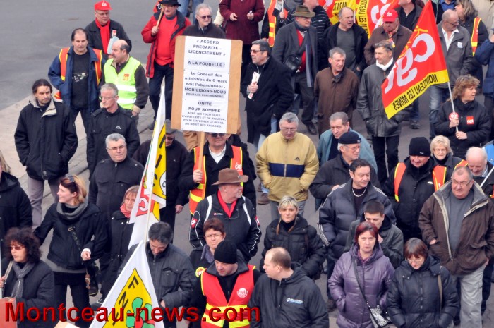 Un discours unitaire : CGT et FO (organisations soutenues par Solidaires et FSU), que vous retrouverez ci-dessous dans son intégralité, avec comme grand mot d’ordre : « tout faire pour empêcher la mise en œuvre de l’accord national Interprofessionnel du 11 janvier dernier« . Des manifestants qui, après s’être rassemblés devant la mairie, ont emprunté les quais pour rejoindre la rue du Docteur Jeannin (où se situe la permanence de Christophe Sirugue) et de revenir par la rue Carnot jusqu’à l’hôtel de ville où le cortège devait se disloquer après la prise parole.
