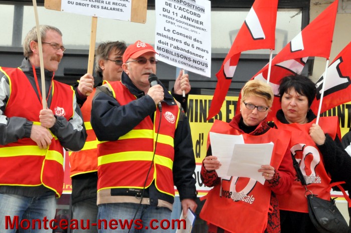 Par contre, pour les syndicats de salariés, pour le gouvernement, ce n’est pas normal de parler d’un bon accord !!! C’est pourquoi ce 5 mars nous interpelons publiquement les députés, mais nous vous demandons, à vous manifestants présents, de faire savoir largement autour de vous que cet accord est mauvais et que si d’autres mobilisations sont nécessaires, nous les organiserons !
