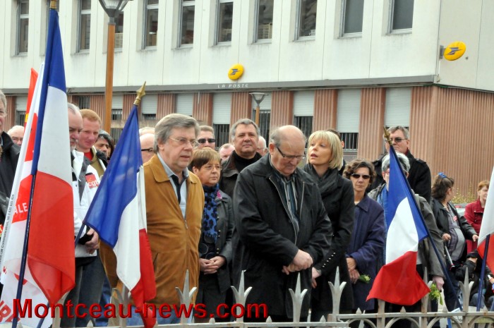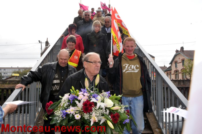 Ces allocutions terminées les manifestants se sont rendus en cortège au monument des mineurs où une délégation municipale emmenée par le maire : Didier Mathus, les attendaient pour y déposer une gerbe.
