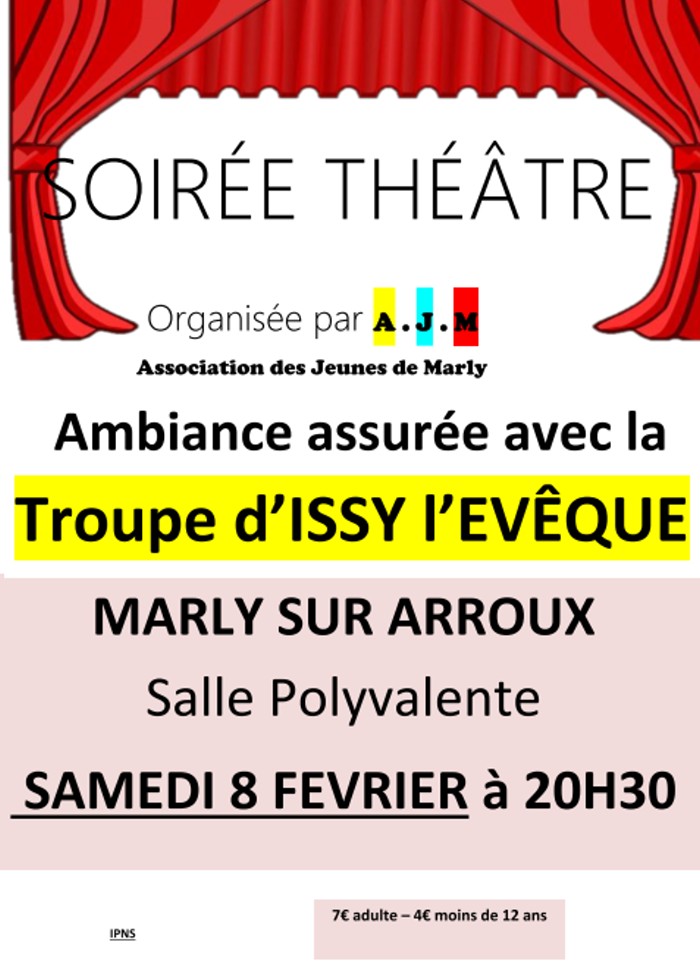 Soirée théâtre organisée le samedi 08 févier à Marly sur Arroux par l’Association des Jeunes de Marly.