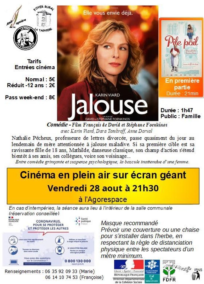 - Vendredi 28 aout : Jalouse de D. et S. Foenkinos (projection précédée du court métrage Pile Poil)