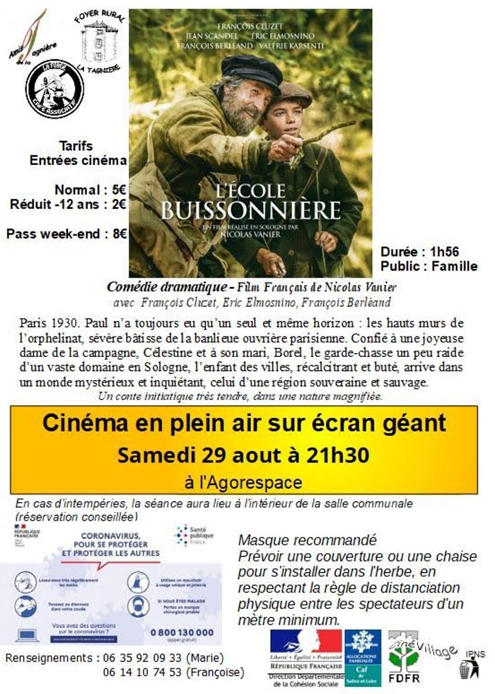 - Samedi 29 aout : L’école buissonnière de N. Vanier (projection précédée du court métrage Soury)