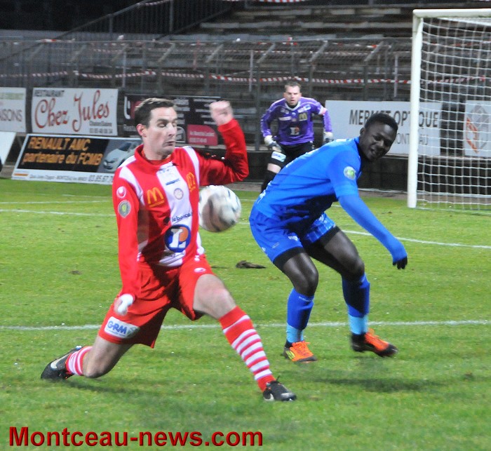 – 46ème, belle action collective de Montceau, le ballon va de droite à gauche, puis de gauche à droite devant la surface de réparation grenobloise, et la reprise de volée finale de Bon passe à côté