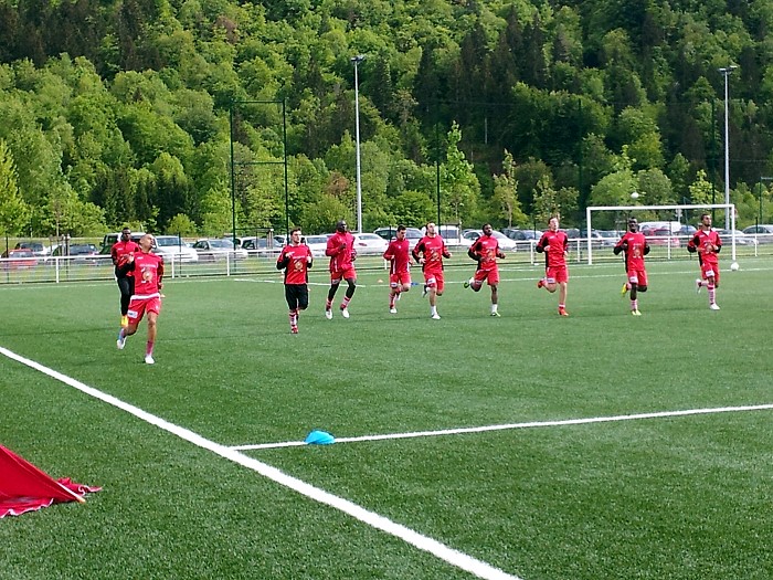 Par contre : coup dur : Bébé Kambou a pris un carton rouge à la 40ème minute pour faute à la limite de la surface de réparation. Les montcelliens jouent donc à 10.