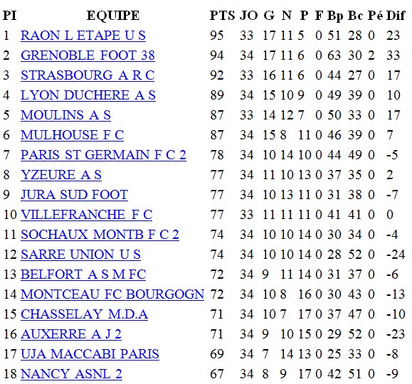 Et la confiance allait grandir tout au long du match lorsqu’ils voyaient leurs idoles jouer crânement leur chance et certainement donner l’une de leur meilleure prestation de la saison, même réduits à 10 après l’expulsion sévère de Bébé Kambou à la 40ème minute de jeu. Ils auraient pu, ils auraient dû gagner et après la fin du match, si le résultat et la manière étaient plutôt flatteurs, les supporters allaient vite déchanter après avoir fait le constat que les résultats de leurs adversaires directs pour le maintien leur étaient défavorables, en particulier la victoire surprenante de Sarre Union à Lyon La Duchèreet le nul de Belfort et que leur classement de 14ème, qui plus est 3ème 14ème, les condamnait à la relégation.