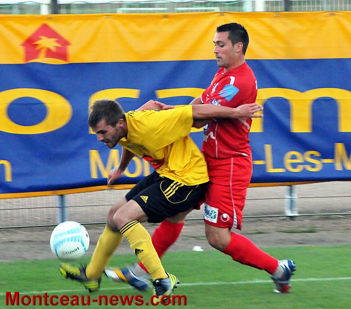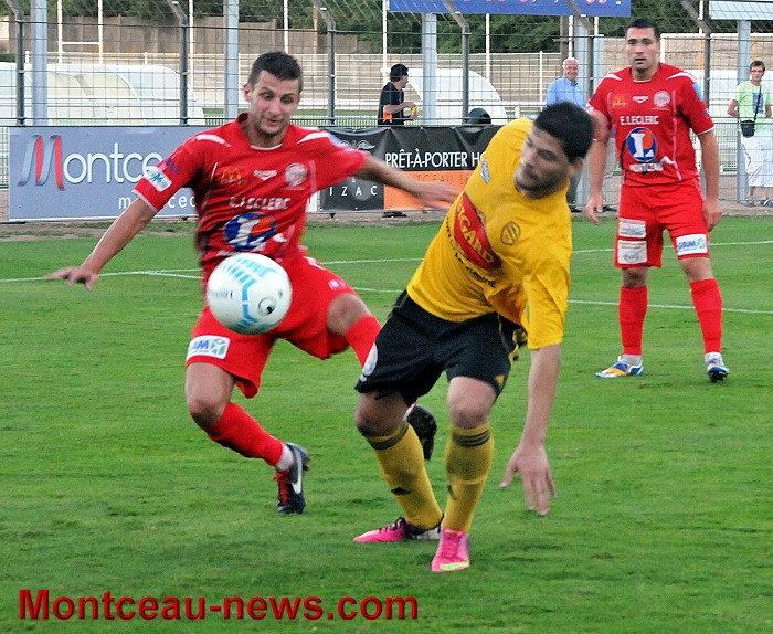 Le jeu s’équilibrait un peu, le CS Louhans se montrant plus à son avantage, ce qui n’empêchait pas Montceau de jouer plus vite et c’est tout à fait normalement que Yoann Bon donnait l’avantage à son équipe à la 76ème suite à une superbe passe en profondeur de De Body. Guillaume Elorza se mettait en évidence en arrêtant de belle façon un pénalty à la 82ème.