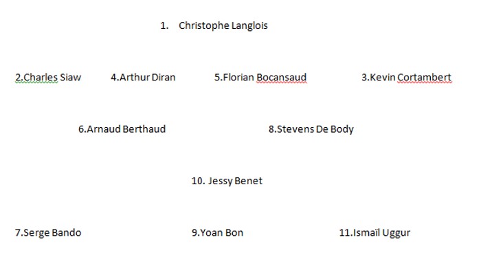 Les coaches, Lionel Large et Yannick Chandioux renouvellent leur confiance aux joueurs qui ont débuté le match samedi dernier contre Belfort, sachant que l’objectif est d’aller chercher des points contre cette équipe qui, l’an dernier s’est avérée très performante.