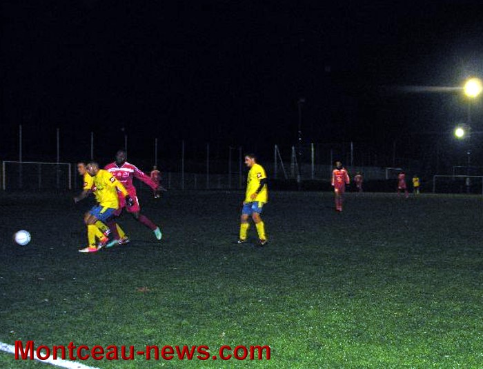 Les buts montcelliens ont été marqués par Serge Bando (2ème et 55ème) et Nicolas Yaba (83ème). Les Gueugnonnais ont marqué eux aux 7ème, 65ème et 90ème minutes.