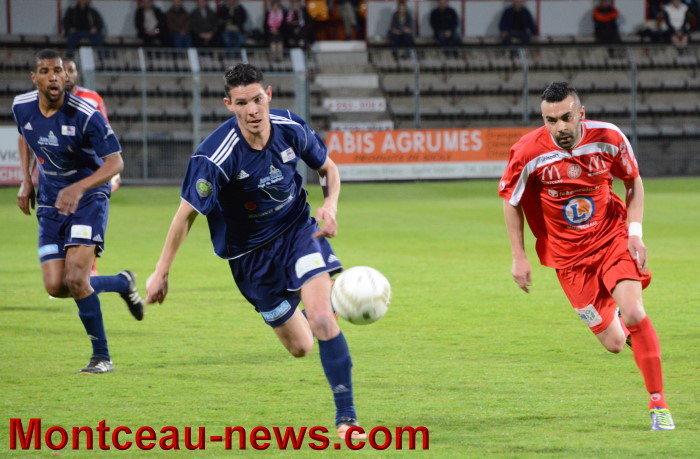 FCMB 1 JURA SUD 4 , Buts pour Montceau : Azziz Kebbal ((10ème), pour Jura Sud : Gendrey (39ème), Robollozzo (56ème), Carlos Hiranda (76ème sur pénalty), Gendrey ( 82ème).