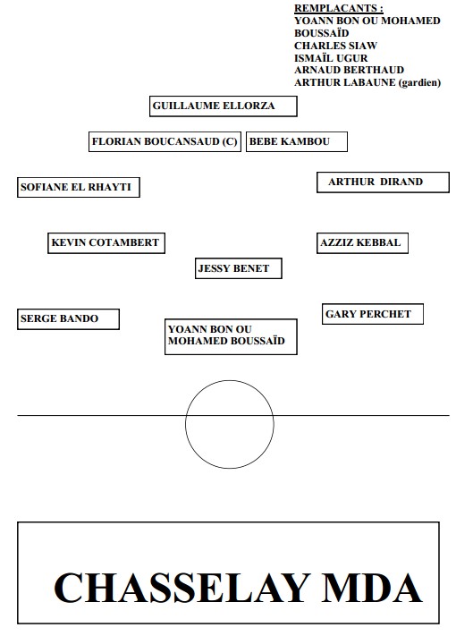 La tâche ne sera pas facile puisque Chasselay, avec 61 points (3 de plus que le FCMB) pointe à la 7ème place du groupe et peut présenter une équipe composée de joueurs de talent, avec, entre autres, Govou et Juilly 2 anciens internationaux et Jouad Zairi ex gueugnonais, Olympiakos, Sochaux …