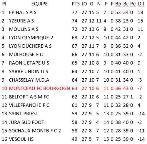 Oui ce soir le FCMB Montceau va disputer un match important à domicile ce soir contre Vesoul dernier du championnat et combien important pour les rouges et blanc, car en cas de victoire on assure notre maintien ! mais pour cela il faudra tout donner contre une équipe qui n’a plus rient à perdre, alors les joueurs doivent prendre cette rencontre à leurs comptes mettre la pression sur cette équipe de Vesoul, jouer collectivement, défendre tous ensemble et apporter du soutien à nos attaquants devant le but, on se doit de gagner car c’est ce soir que se joue le maintien, joueurs et Coachs à vous de montrer devant vos supporters aux alouettes que Montceau mérite de rester en CFA ! Allez les rouges et blanc ..