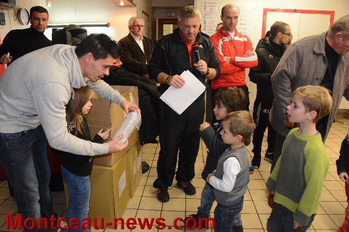 Cela étant, revenons-en à cet après-midi au cours duquel, des joueurs de l’équipe A, présents à cette fête, ont distribué à chaque enfant (100 en tout) : une gourde, des friandises, un poster de l’équipe fanion (qu’ils pouvaient faire dédicacer par les joueurs présents), tandis qu’un chocolat chaud et un goûté leur était offerts.