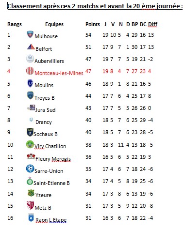 Classement après ces 2 matchs et avant la 20 ème journée :