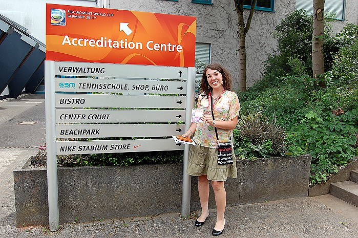 Et la maman de poursuivre : « étant à la base sportive , dynamique et pleine d’énergie, elle a postulé et posé sa candidature pour être bénévole à la coupe du monde féminine en s’inscrivait donc sur le site de la FIFA. Après un entretien téléphonique pour constater sa maitrise de la langue, on lui a demandé dans quel domaine elle souhaiterait participer« . Et notre lectrice de poursuivre en expliquant qu’Elodie a été convoquée pour une formation et voir ainsi ce que l’on attendait de sa participation : « elle a donc choisi de s’occuper de la mascotte puis tout ce qui touche le domaine du marketing et le 14 juin dernier elle récupérait son badge (laisser-passer pour la belle aventure ) + un équipement complet (pantalon, pantacourt, basket , chaussettes ,veste , casquette et sac)…«
