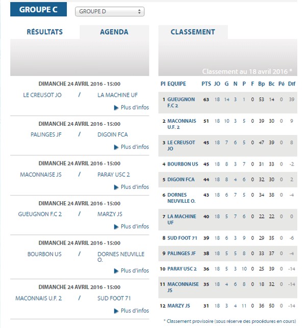 N’en oublions pas ce qu’il se passe derrière, à quatre journées de la fin peu d’équipes sont assurées du maintien, Sanvignes possède 6 points d’avance sur le dixième Rully, méfiance même si le risque est minime. Le tout à quatre journées du terme, c’est dire si enjeux il y a dans ce groupe.
