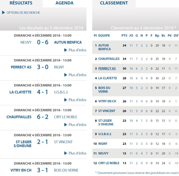 Au final six buts à deux, Ciry est dernier avec 12 points, il faudra un sans-faute lors de la phase retour pour espérer accrocher le maintien. Un miracle à la TFC, c’est possible. De son côté, le Bois Du Verne a laissé passer une belle occasion de se rapprocher du trio de tête, en s’inclinant sur la pelouse de Vitry en Charollais (3-1). Les hommes de Kalu N’Goma sont toutefois cinquièmes au classement, un bon bilan.