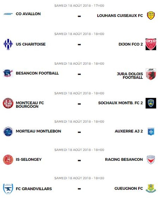 Programme de cette 1ere journée de National 3