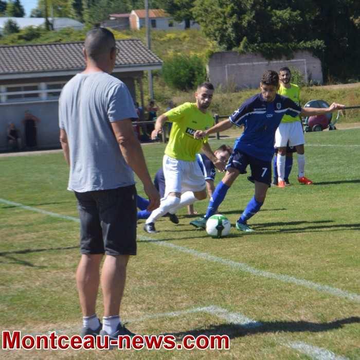 En seconde période, les deux formations vont se rendre coup pour coup durant un bon moment avec une maîtrise Montcellienne mais un manque de justesse pour terminer leurs actions. A 79eme minute, Theo Monin va libérer Montcenis en s’offrant le doublé d’une frappe puissante qui trompe Mohamed Mahla, impuissant sur ce coup de canon !