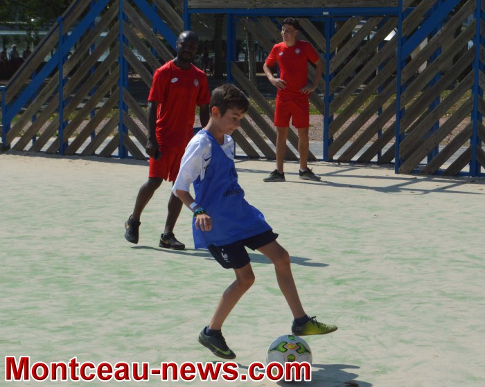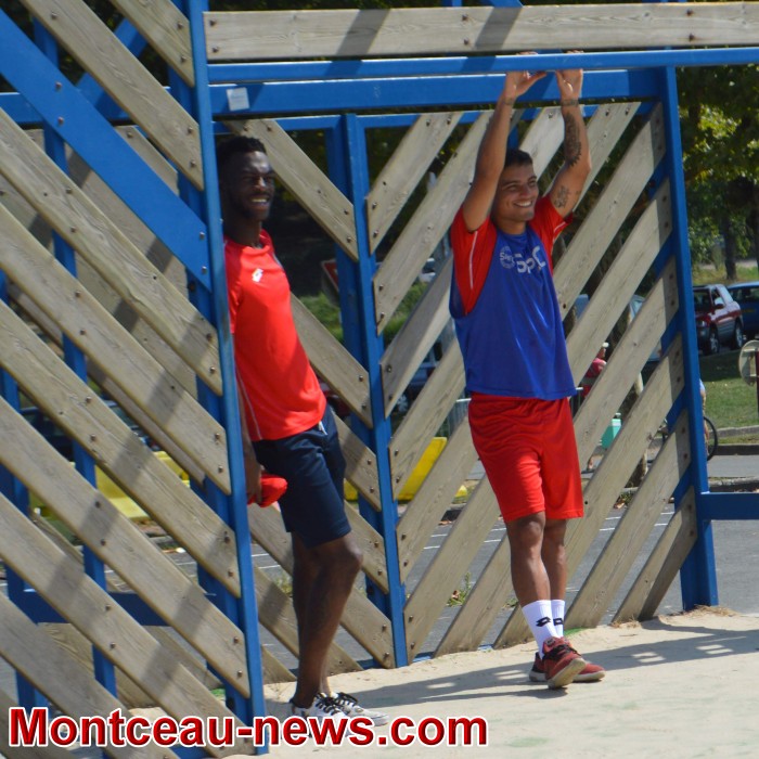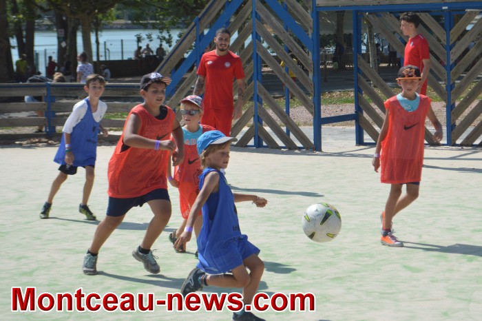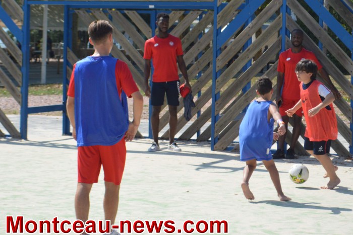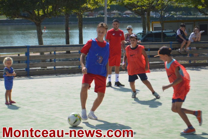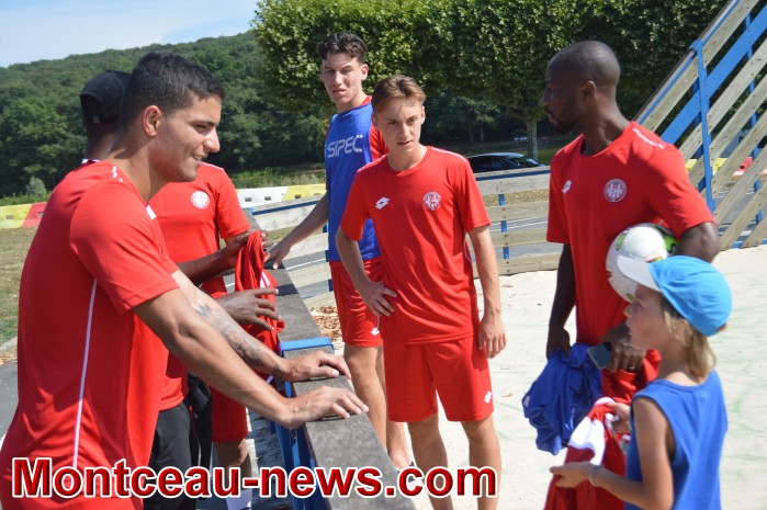 Pour la seconde et dernière fois de l’été, le FC Montceau Bourgogne était représenté ce mercredi après-midi aux abords des Rives du Plessis. Et cela avec plusieurs joueurs qui se sont laissés prendre au jeu pour un petit moment sympathique avec les enfants. Des enfants qui ont apprécié de pouvoir jouer pendant plus d’heure avec les sportifs.