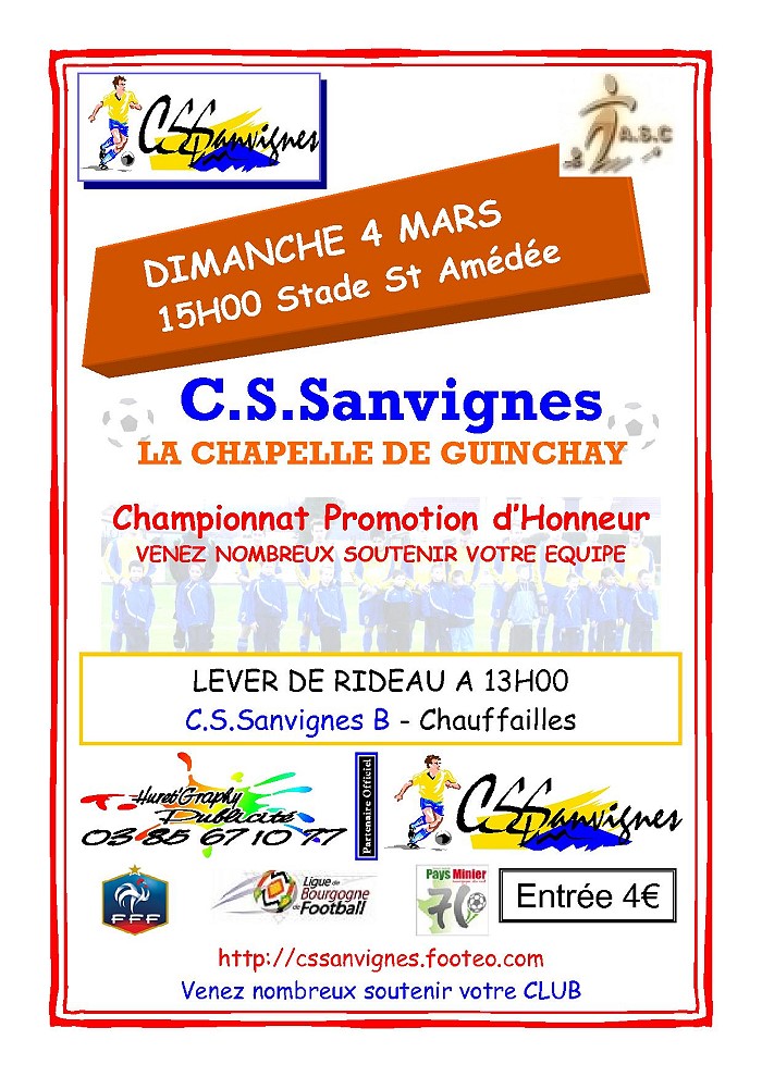 Seniors A reçoit La Chapelle de Guinchay à 15h00.