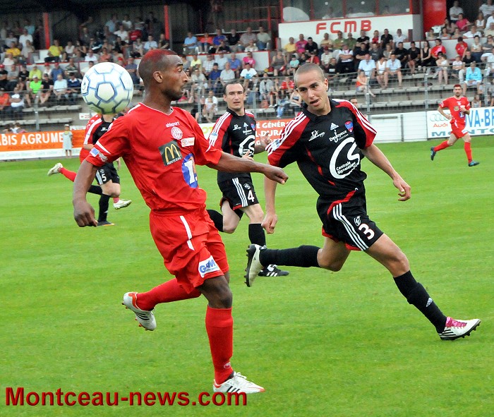 Dans l’ensemble, le FCMB est serein et domine bien son sujet, Andrézieux ne faisant que défendre tout en étant à 2 doigts d’égaliser à la 24ème lorsque Zerari, seul aux 18m rate compètement sa reprise. Dans la minute qui suit, sur un beau centre de Perchet, c’est Belhair qui manque le cadre… et c’est au tour de Perchet de mettre à côté sa reprise sur un centre de Serpry.