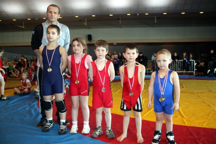Les poussins Montcelliens ont participé ce dimanche 6 février au championnat de Saône et Loire de lutte à la Maison du peuple de Chagny.