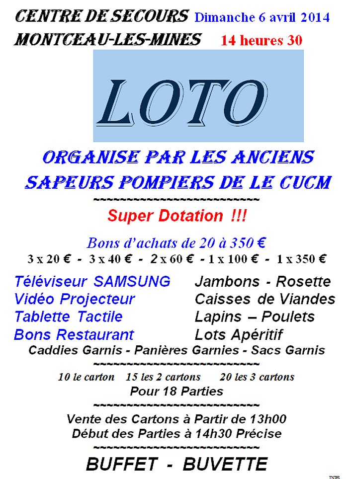 Loto, le Dimanche 6 avril2014 au CIS Montceau