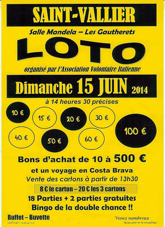 Loto, à Saint-Vallier, le dimanche 28 septembre 2014
